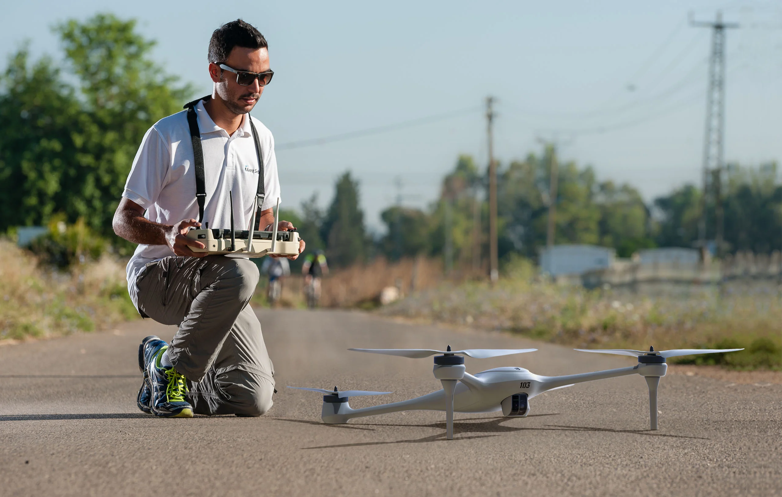 The novel body frame allows easy access to all avionic components and was optimized to fit composite material manufacturing technologies. The quad has a specific angle for take off and real time video capture, that is altered automatically and aerodynamically optimized when transitioning to high speed flight. This design ensures minimal resistance and friction. The new quadcopter is part of a full tactical operation system that offers various types of payloads, quick deployment and turn around time with covert operation capabilities.